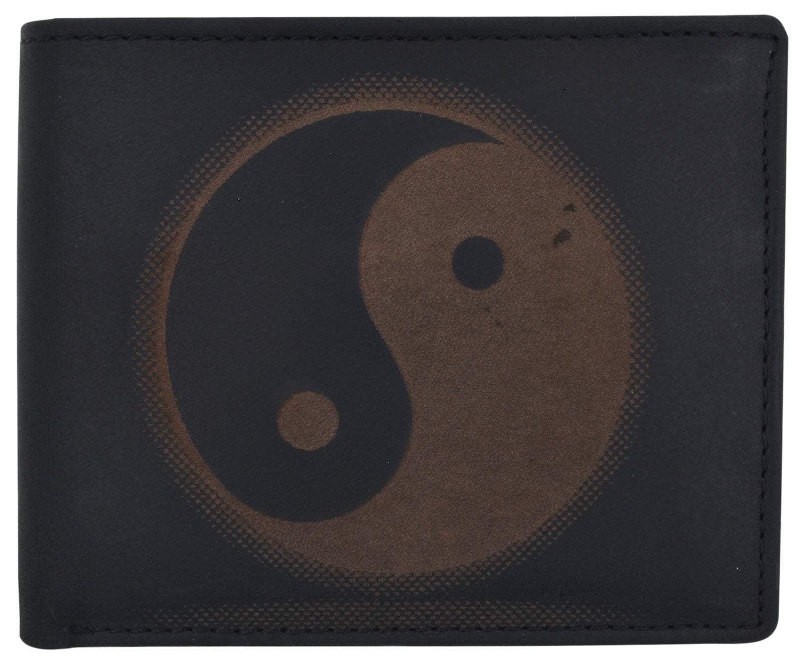 Bifold Genuine Leather Mens Rfid Credit Card Id Wallet W Ying Yang Logo Walmart Com