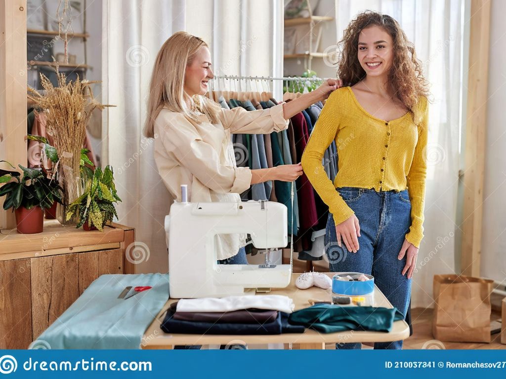 Puny Mole429 Anime Style Close Up Artwork Of Sinhala Women Dressmaker Measuring A Young Girl For A Dress In The Modern High Quality Expensive Tailoring Shop The Dressmaker Is A Twenty Two Years Woman